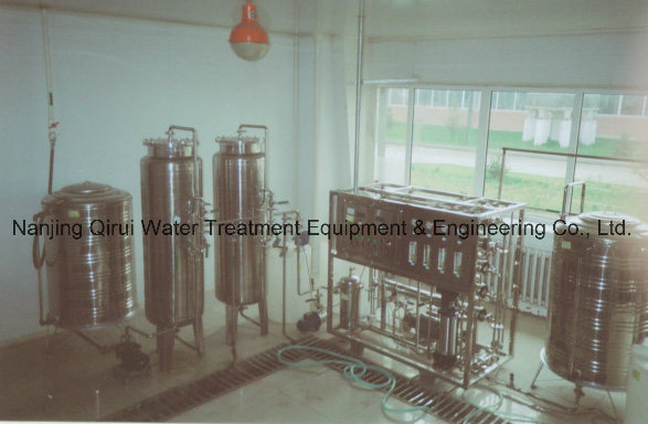Raw Water --- Raw Water Tank --- Raw Water Pump --- Quartz Sand Filter --- Activated Carbon Filter --- Chemical Dosing Device --- Precision Filter --- High Pressure Pump --- Reverse Osmosis Device --- Cleaning Device --- Fresh Water Tank --- Chemical Dosing Device --- Pure Water Tank --- Ultraviolet System --- Water Using Point